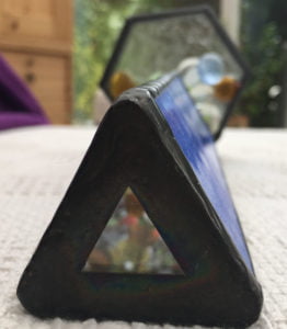camping and kites. One of my most treasured items is my stained glass kaleidoscope given to me by my husband. It’s part of a little gathering of kaleidoscopes collected by me since childhood, and I can’t walk past one without losing myself in it.