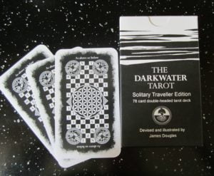The Darkwater Tarot is a beautiful and intriguing deck, and I am excited to be reviewing it here to share with you. The creator, James Douglas is an artist, illustrator and teacher and developed the Darkwater Project over several years. The deck grew out of working with tarot from the perspective of self-trust and exploring the images to further delve into the messages. Douglas introduced myriad signs and symbols into each card
