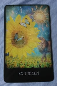 I would use this as a deck to accompany dreamwork or to delve into the complexities of emotional issues. Fittingly, the suit that resonates most with me is Cups, represented by beautiful crystal goblets. My favourite card is probably The Sun, possibly because I have a devotion to solar deities. I love the rich colour of the sunflowers and the lion. The overall feeling I get from the deck is meditative and as enchanting as the name suggests.