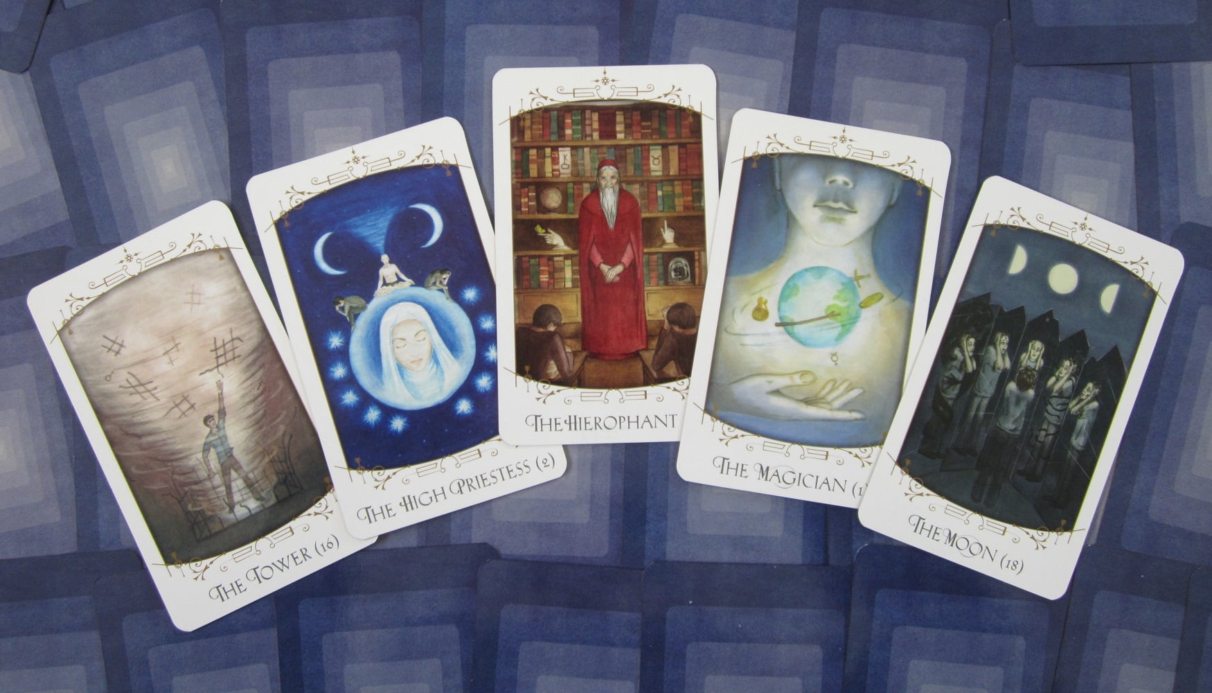 Insight Tarot Tower, High Priestess, Hierophant, Magician and Moon