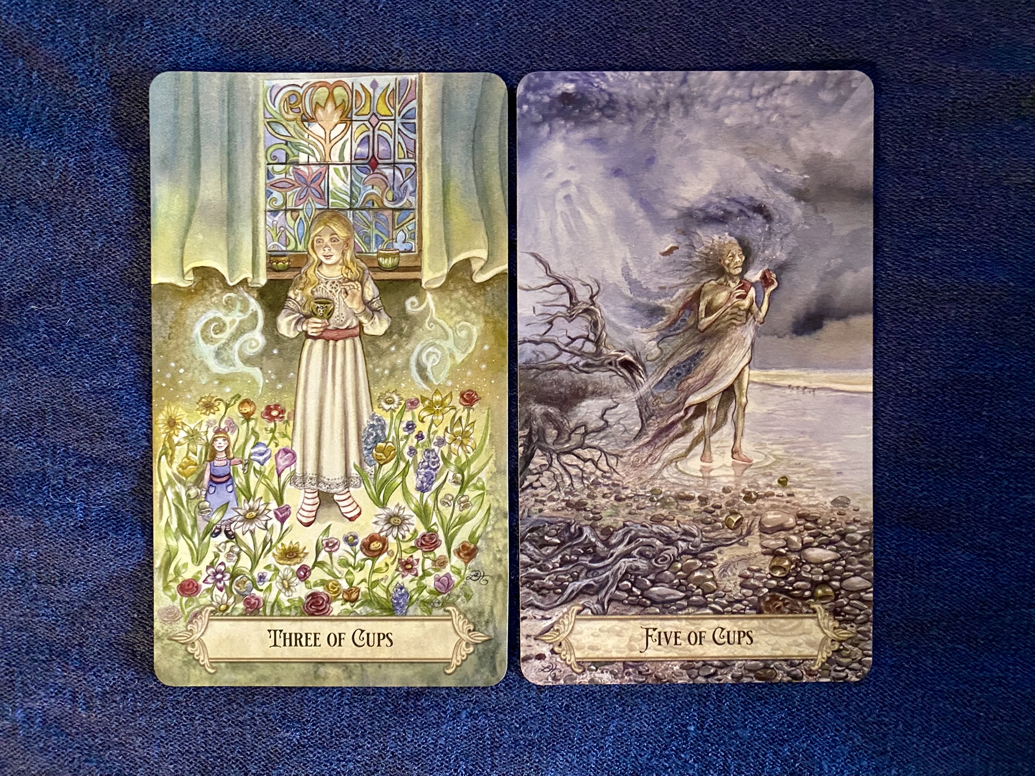 Sharing both familiar and more obscure fairy tales, the author, “wanted to share tales from around the world, to demonstrate the universal power of [the] stories and how they are an integral part of our world heritage”. She notes that, “the basic themes found in fairy tales—rags to riches, transforming beasts, animal helpers, and other manifestations of the fantastic—resonate with humanity on a collective level.” Further, she says that, “one mission of the fairy tale is to force us to confront [the] dark entities residing in our psyche.” These points are important: if you are perhaps reluctant to pick up this deck thinking that it would fall too young or too light, that would be an incorrect assumption. There is a great deal of depth (and some darkness) within these cards and tales.