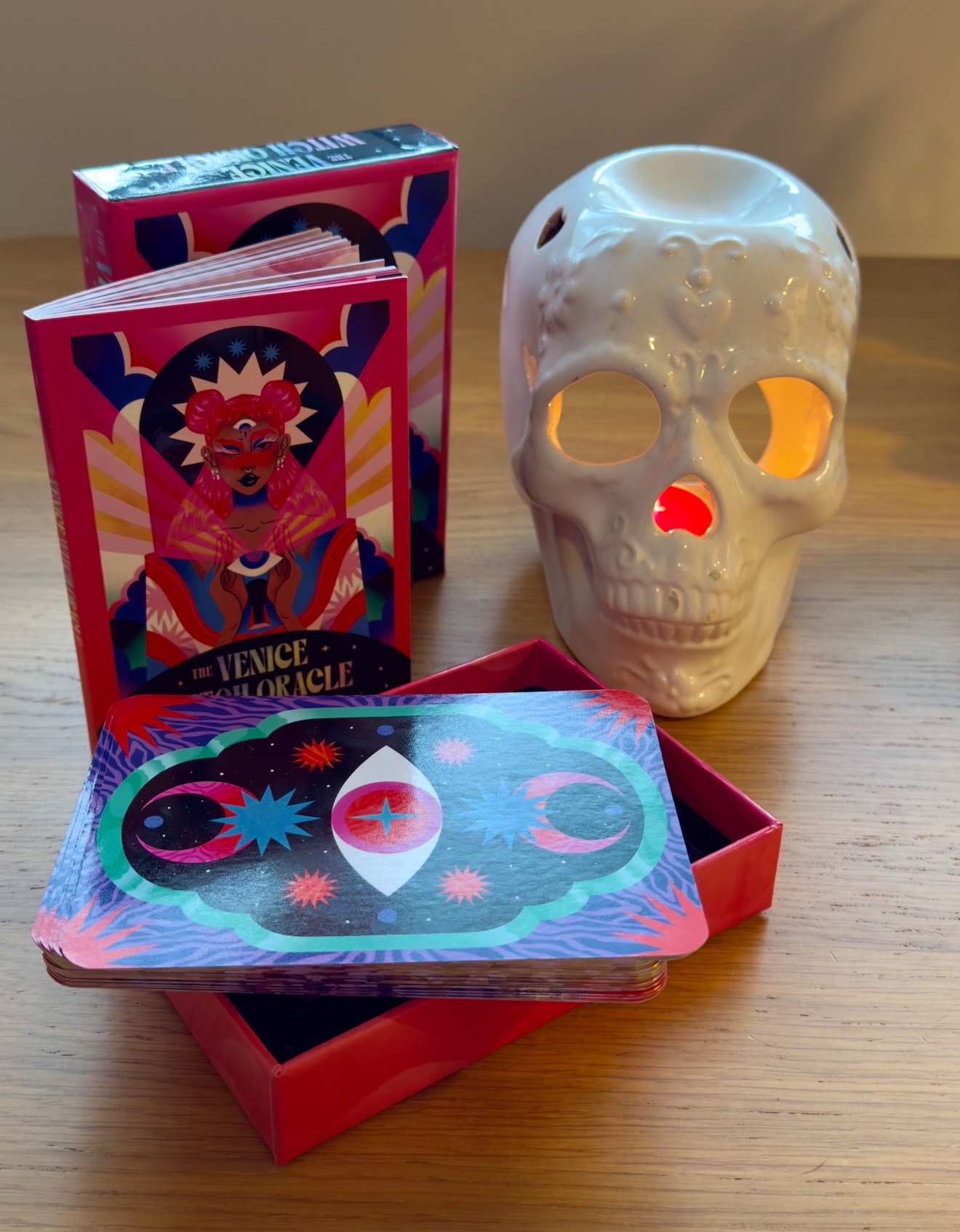I jumped at the chance to review this vibrant oracle deck ‘The Venice Witch Oracle’ by Lili Nguyen and Lucie Corbasson. Its eye-catching colours instantly caught my eye.