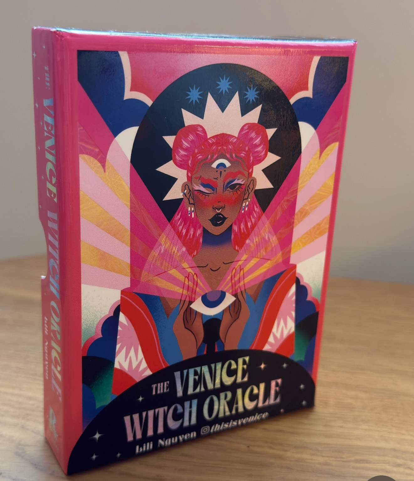 This exuberant and psychedelic oracle deck was originally published in French under the name ‘The Venice Witch’ in September 2021. It was then republished in several different languages by Rockpool Publishing in early 2025. To date, Lili Nguyen has only created this oracle deck, which when republished by Rockpool was renamed ‘The Venice Witch Oracle’.