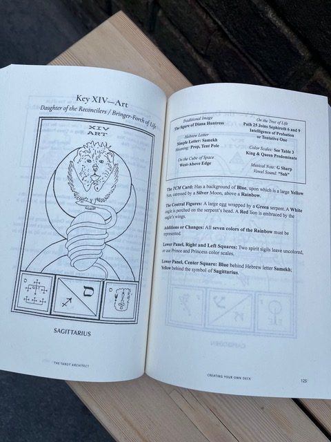 Within Book II, the tarot is split into multiple sections. The Trumps are split into three groups, based on the Hebrew letter associations. The Lesser Arcana also split into three: Aces and Princesses, Court Cards and the Small Cards. While some tarot books spend a lot of time on the majors and less on the minors, Tarot Architect approaches the tarot thoroughly, and uses this opportunity to teach Qabalah, the astrological decans and the GD colour scales. A lot is packed into this book, but it is broken down into manageable sections. It also includes divinatory meanings, correspondence tables, extensive footnotes and a bibliography.