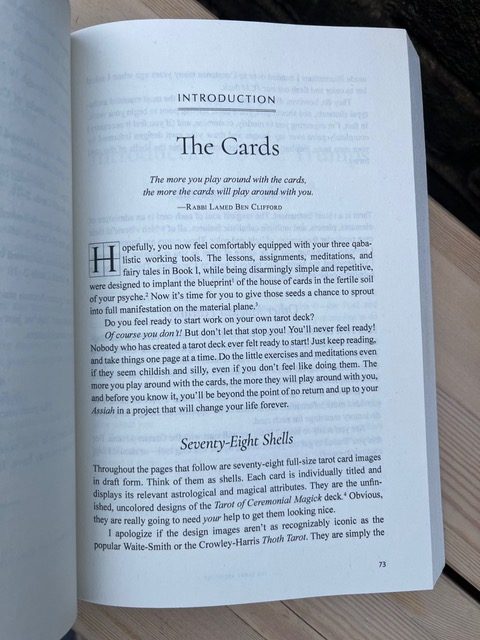The book begins with a crash course in Qabalah, including an introduction to the Tetragrammaton, the Tree of Life and the Cube of Space (Book I). This can be overwhelming for some, but the reader is encouraged to follow along by using specified cards from their tarot deck and practising guided meditations, taking them beyond rote learning into a physical practice with visual and mindful awareness. There are frequent ‘Sidebars’ where the author instructs readers to face certain directions, pull certain cards, observe and kiss the cards, and even use a pitch pipe (he is also a musician). There is homework, and also regular reminders to yes, please, actually do the steps he advises!