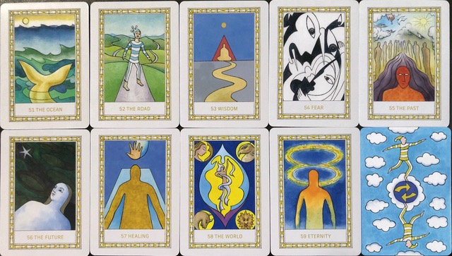 But it doesn’t end there, for with the final addition of Eternity, there is more to the World. The Fool becomes part of the larger whole that is boundless, timeless, and with the familiar lemniscate, the never-ending flow of energy. The World may take us to the next chapter, but it is the Eternity card, all encompassing, where the possibilities are truly endless.