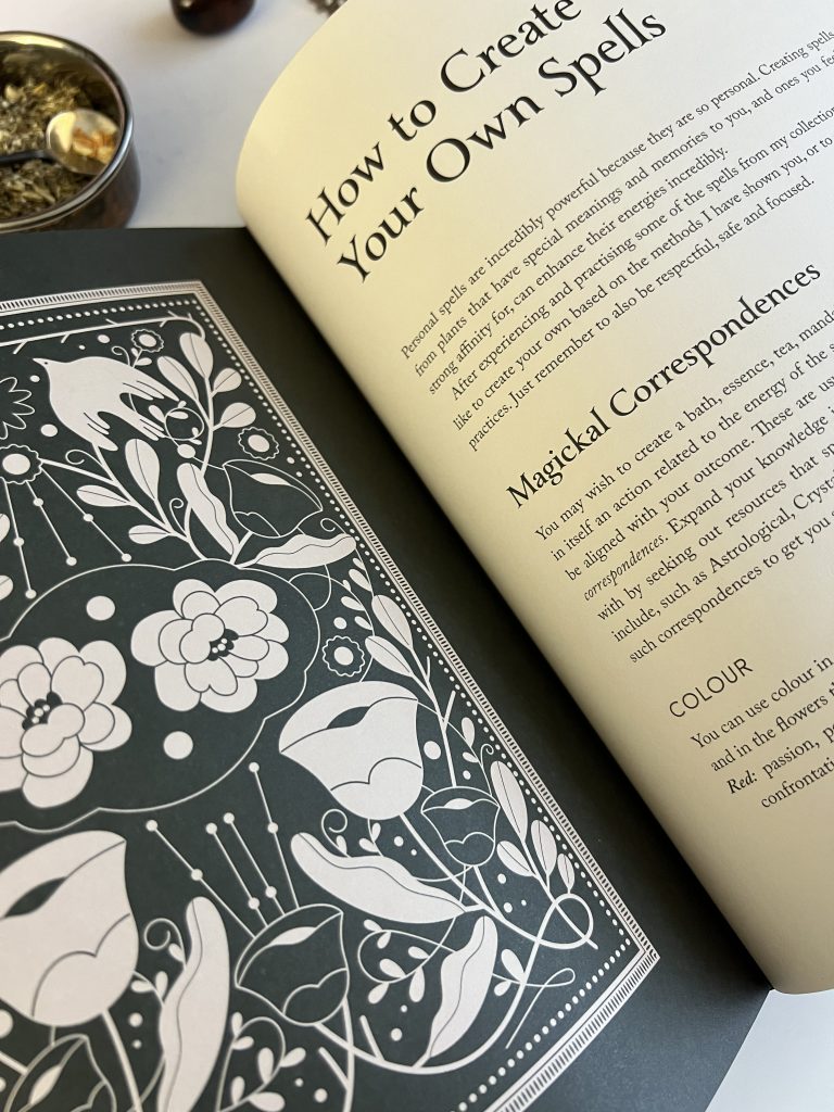 The artwork is gorgeous, with botanical drawings throughout, textured paper, and each section denoted by the most beautiful designs, reminiscent of art nouveau decorative detailing. Every design detail is as magickal as the content itself.