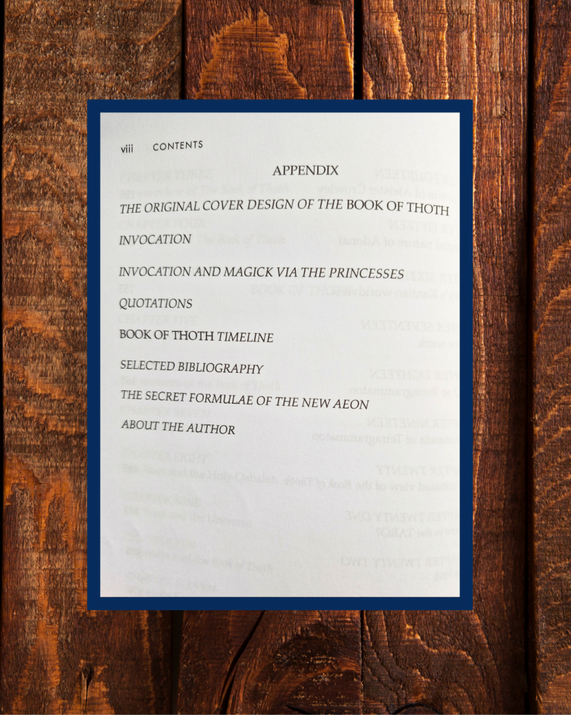 Now you might be wondering, who is the Society of Eight? I will tell you that it is a theme throughout the book, and a fascinating one at that. In fact, if you are interested in the inner workings of secret societies like the Society of Eight and the Golden Dawn, there is plenty for you to get your teeth into in The Secret of the Thoth Tarot.