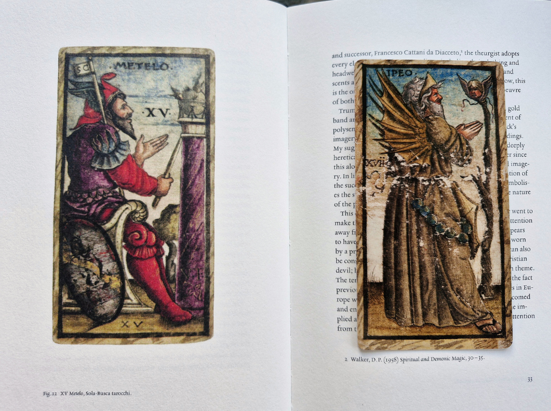 The evidence [Adams] presents unequivocally challenges the notion that the tarot served as a mere game of chance; instead it is an artefact imbued with a magical purpose. It is evident that [the Sola-Busca], dating back to c. 1490, predates the commonly accepted time frame of esoteric use by almost three centuries. (p. ix)