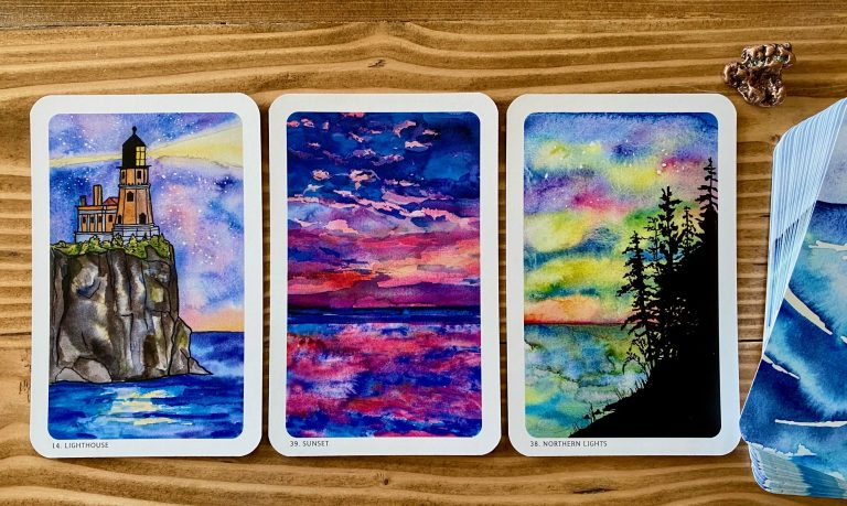 The book itself is gorgeous – it is simply a work of art. It is a 108-page hardback bound in a rich orange fabric with a gold foil stamp of two serpents (serpens sciendi, or ‘serpents of knowledge’) on the cover, and I don’t believe I have ever owned a book made with paper this luxurious. It is a joy to hold it and turn its pages. The illustrations are full-colour and of such superior quality that, as you can see in my picture of two Sola-Busca cards above, there is almost no difference between the printed images and the real cards. Even the typeface is beautiful. What a pleasure to engage with such a masterpiece, and I know I’ll be referring back to it (and all my sticky notes) again and again.