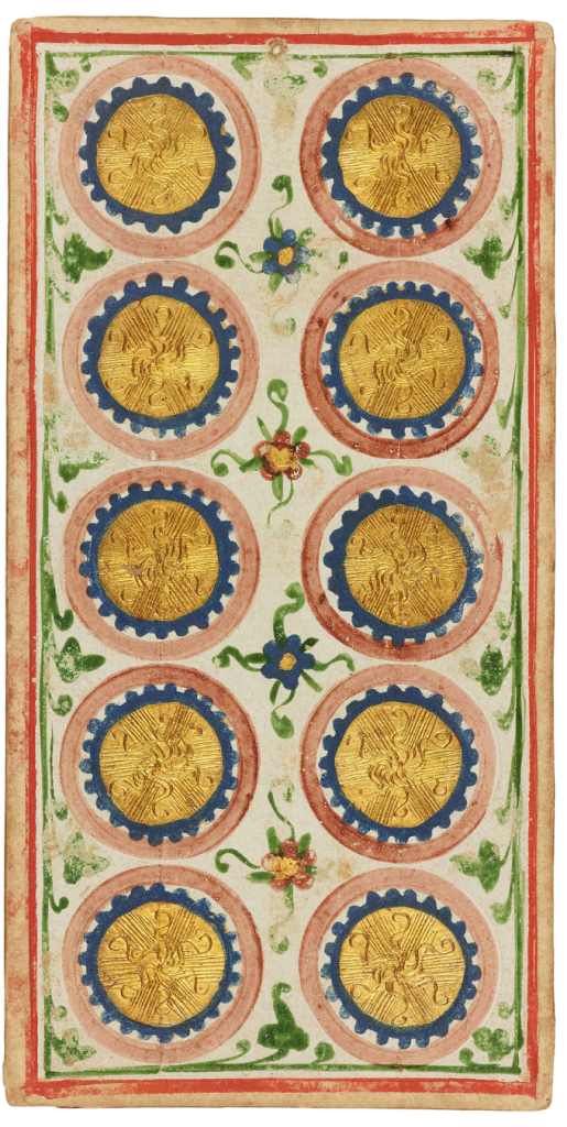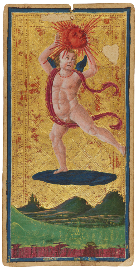 Which naturally raises the question: could the Visconti-Sforza deck itself – have been intended as much for display and contemplation as for play? Its large size and lavish craftsmanship – including gold detailing and hand-painted imagery – certainly support this possibility.