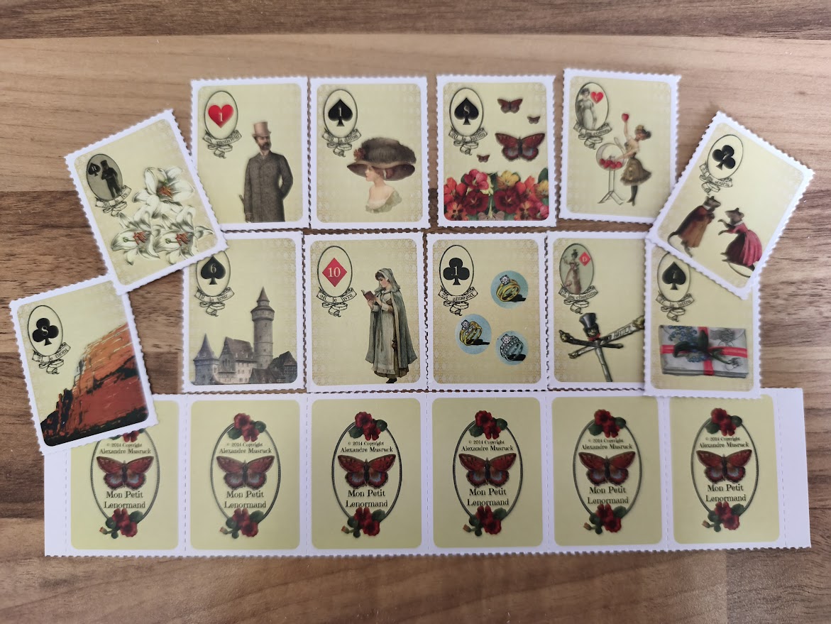 The Game of Hope is a hoot of a game! Akin to Snakes and Ladders, it’s a trip for players traversing the attributes and highs and lows of the cards’ meanings throughout the Lenormand deck. Alexandre has included full instructions. Do have a play!