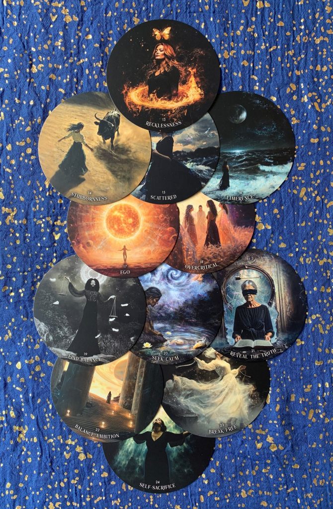 Cards 14, Stubbornness (Taurus), 15, Scattered (Gemini), and 16, Limerence (Cancer), follow, through to Card 24, Self-Sacrifice (Pisces) and the warning against a propensity for martyrdom and advice to prioritise your own well-being.