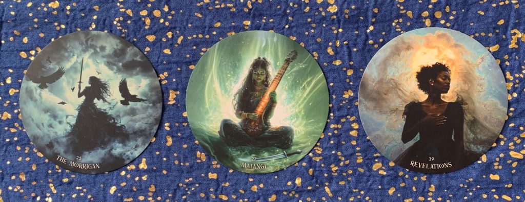 Card 25, The Morrigan – Fight, aligned to Aries, came up in The Potential for Growth position, letting me know I’ll need to fight for what I want and take bold action. My fears are more likely to be in my head than in actual reality, with a need to clear limiting beliefs.