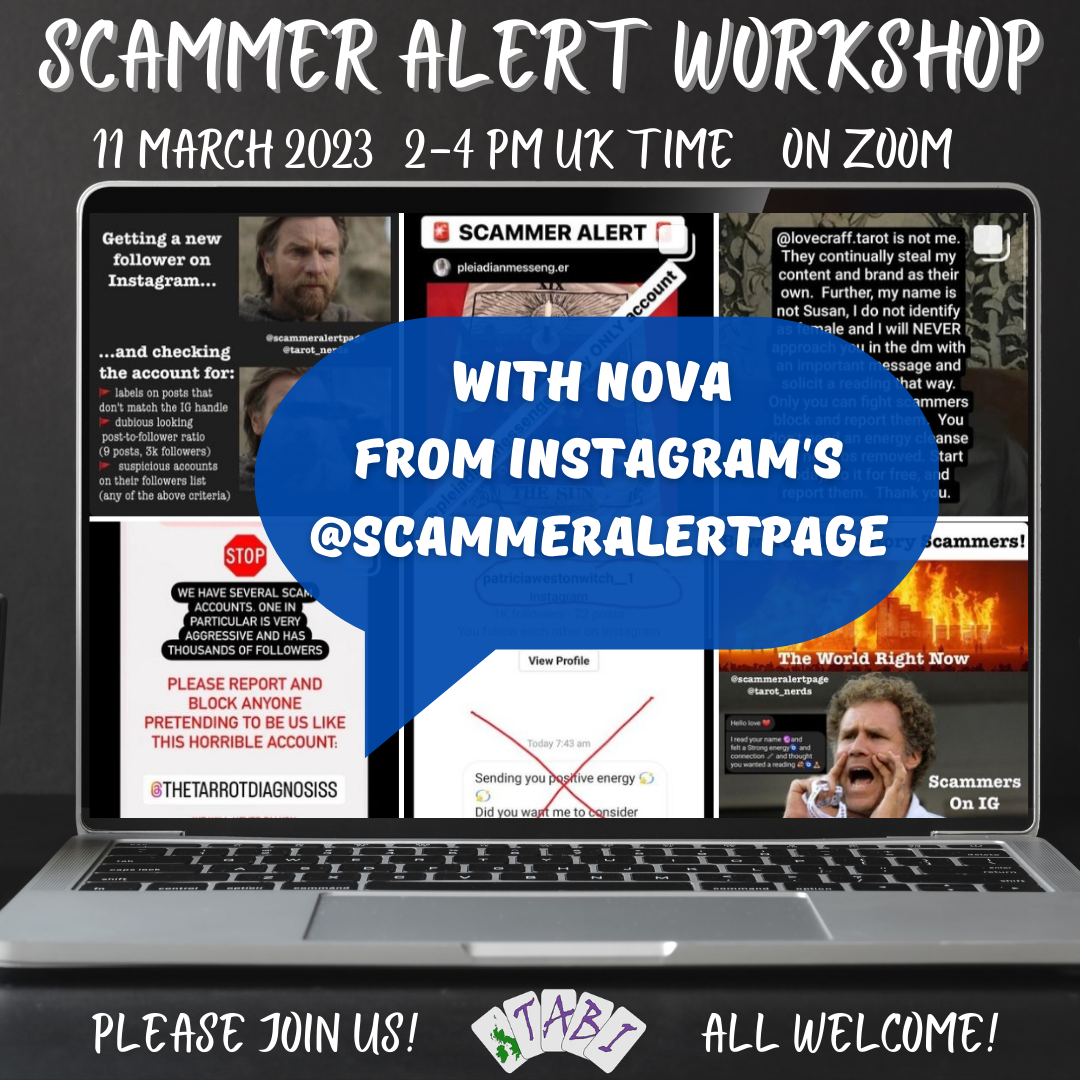 Nova runs the Instagram page which outs fake accounts that violate copyright laws and Instagram’s community guidelines. She is the protector of our Tarot community and helps keep us all in a safe space!