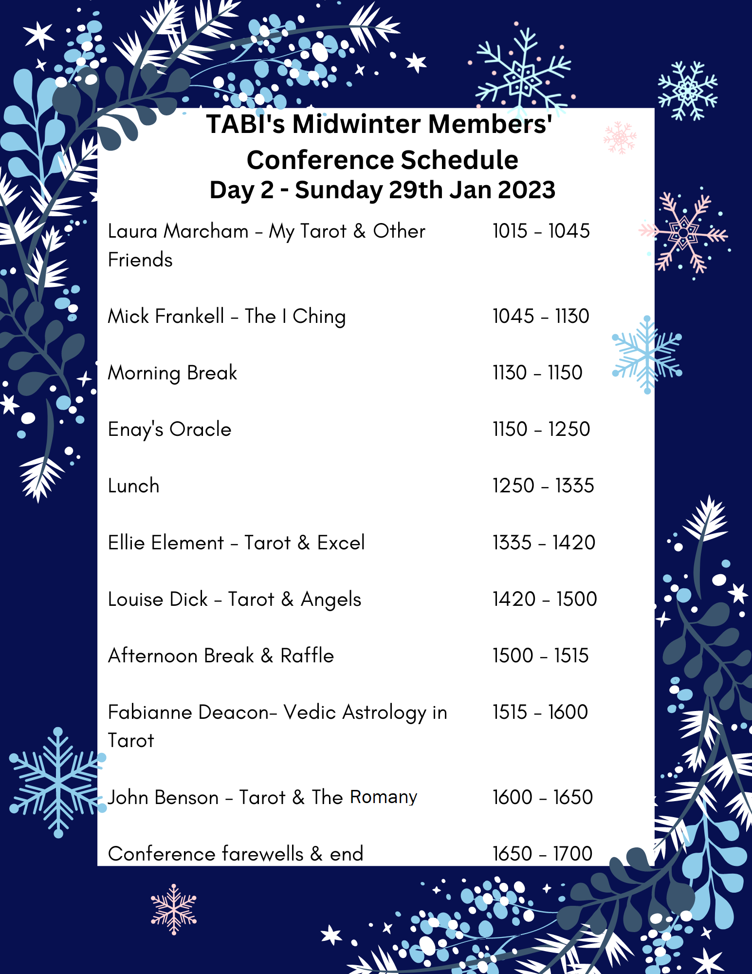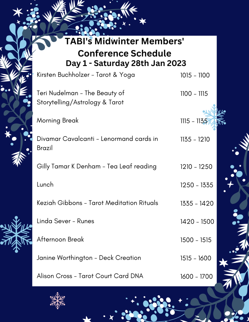 The speakers at this conference are all TABI members, talking about a tarot- or divination-related subject they want to share with us.